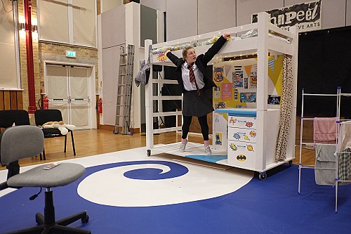 Fusing movement and words, choreographed by Helen Parlor, with a moving and atmospheric sound track from Simon McCorry, Freefall was artistically ambitious and emotionally engaging. Kirsty Jackson played Jas, and was extraordinary in this one woman piece telling the story of Jas, a Vlogger and young adult carer aged 16, reflecting on her life.